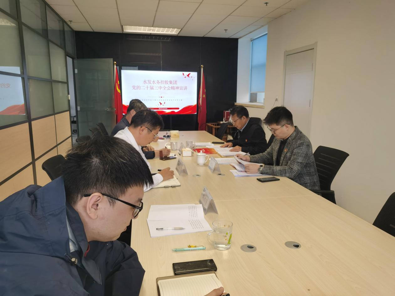 為深入貫徹落實黨的二十屆三中全會精神,深刻認識黨的二十屆三中全會重大意義,水發(fā)水控集團各區(qū)域公司以會前自學、分組學習研討、集中宣講等形式掀起學習熱潮。