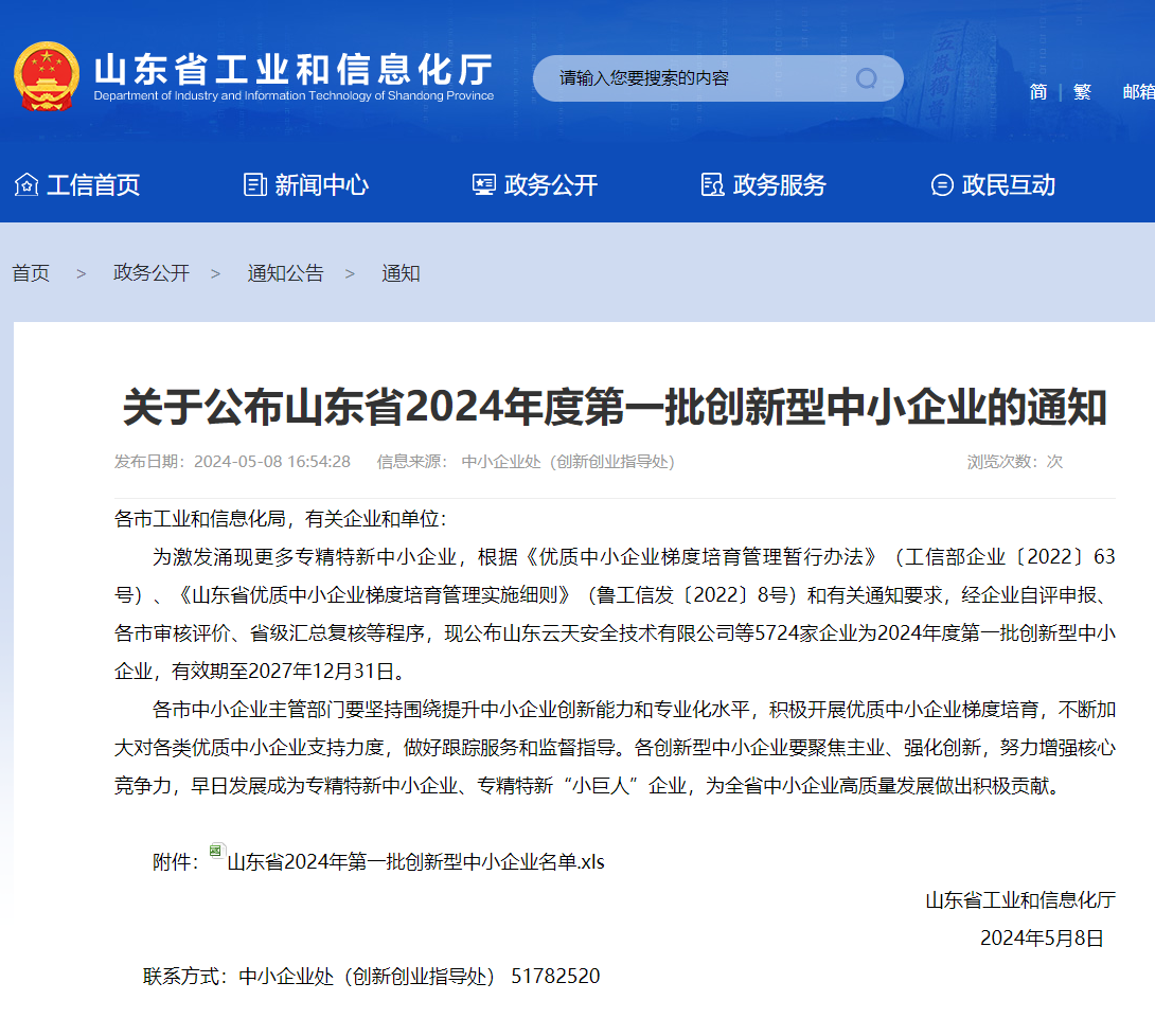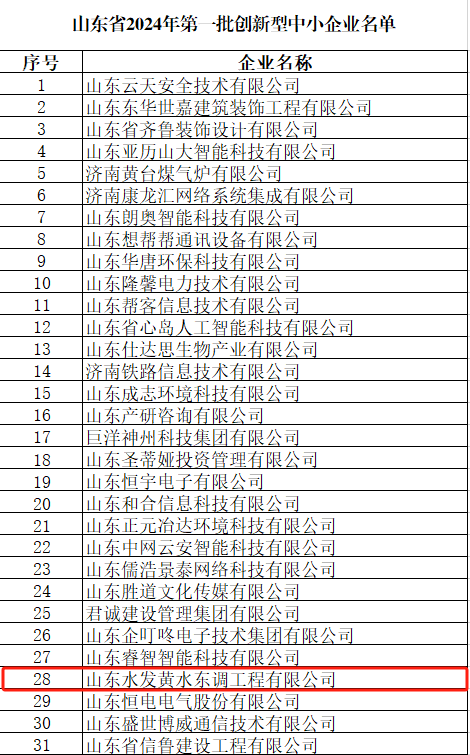 近日,山東省工業(yè)和信息化廳公示了山東省2024年首批創(chuàng)新型中小企業(yè)名單,黃水東調(diào)公司成功入選。