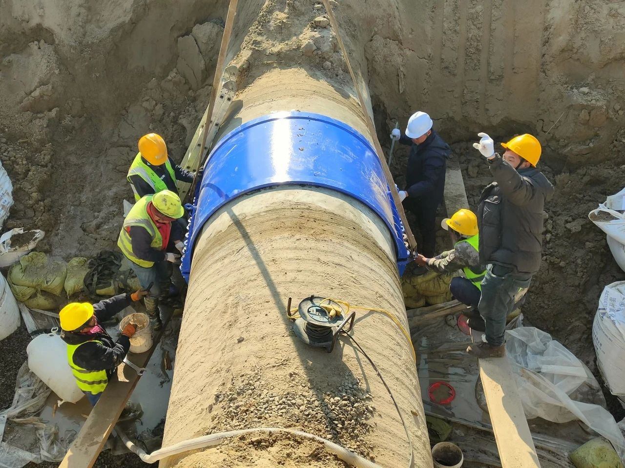 情況緊急,發(fā)現(xiàn)漏水后,工程管理部搶修人員以最快的速度奔赴現(xiàn)場(chǎng),仔細(xì)檢查上下游閥門,憑借豐富經(jīng)驗(yàn)和專業(yè)技術(shù),初步鎖定管線破損的位置與深度??蛻舴?wù)部第一時(shí)間將漏水情況向建設(shè)交通局報(bào)告,并積極協(xié)調(diào)現(xiàn)場(chǎng)開挖工作,爭(zhēng)分奪秒推動(dòng)搶修進(jìn)程。與此同時(shí),供水調(diào)度中心發(fā)揮著“智慧大腦”的作用,迅速調(diào)配惠澤水廠對(duì)第一、第三供水管線進(jìn)行精細(xì)調(diào)節(jié),精準(zhǔn)關(guān)閉第四供水管線破損位置的上下游閥門,一場(chǎng)保障居民用水不受影響的“戰(zhàn)役”就此打響。 搶修人員先對(duì)管體保護(hù)層進(jìn)行打磨,如同給受傷的“血管”清創(chuàng),再均勻地涂抹上搶修劑修補(bǔ)創(chuàng)口,最后用定制的哈夫節(jié)緊緊包裹。完成修復(fù)后,在管底鋪上厚厚的碎石墊層,給管道安上了一個(gè)穩(wěn)固的“床墊”,確保其在注水后穩(wěn)穩(wěn)當(dāng)當(dāng),不會(huì)沉降。這種方法相較于傳統(tǒng)的拔管、換管方式,不僅降低了成本,還大幅縮短了工期,為盡快恢復(fù)供水爭(zhēng)取了寶貴時(shí)間。 搶修人員全力以赴,輪流作業(yè),經(jīng)過近30個(gè)小時(shí)的連續(xù)奮戰(zhàn),終于完成修復(fù),管道再次流淌著清澈的水流,用戶的用水需求得到了堅(jiān)實(shí)保障。 參與搶修的每一位員工都是守護(hù)用水安全的衛(wèi)士,他們用行動(dòng)詮釋著水發(fā)人的擔(dān)當(dāng)精神,也收獲了廣大用戶的高度認(rèn)可。下一步,供水集團(tuán)將不斷提升服務(wù)質(zhì)量,為濱海區(qū)企業(yè)、居民用水保駕護(hù)航。
