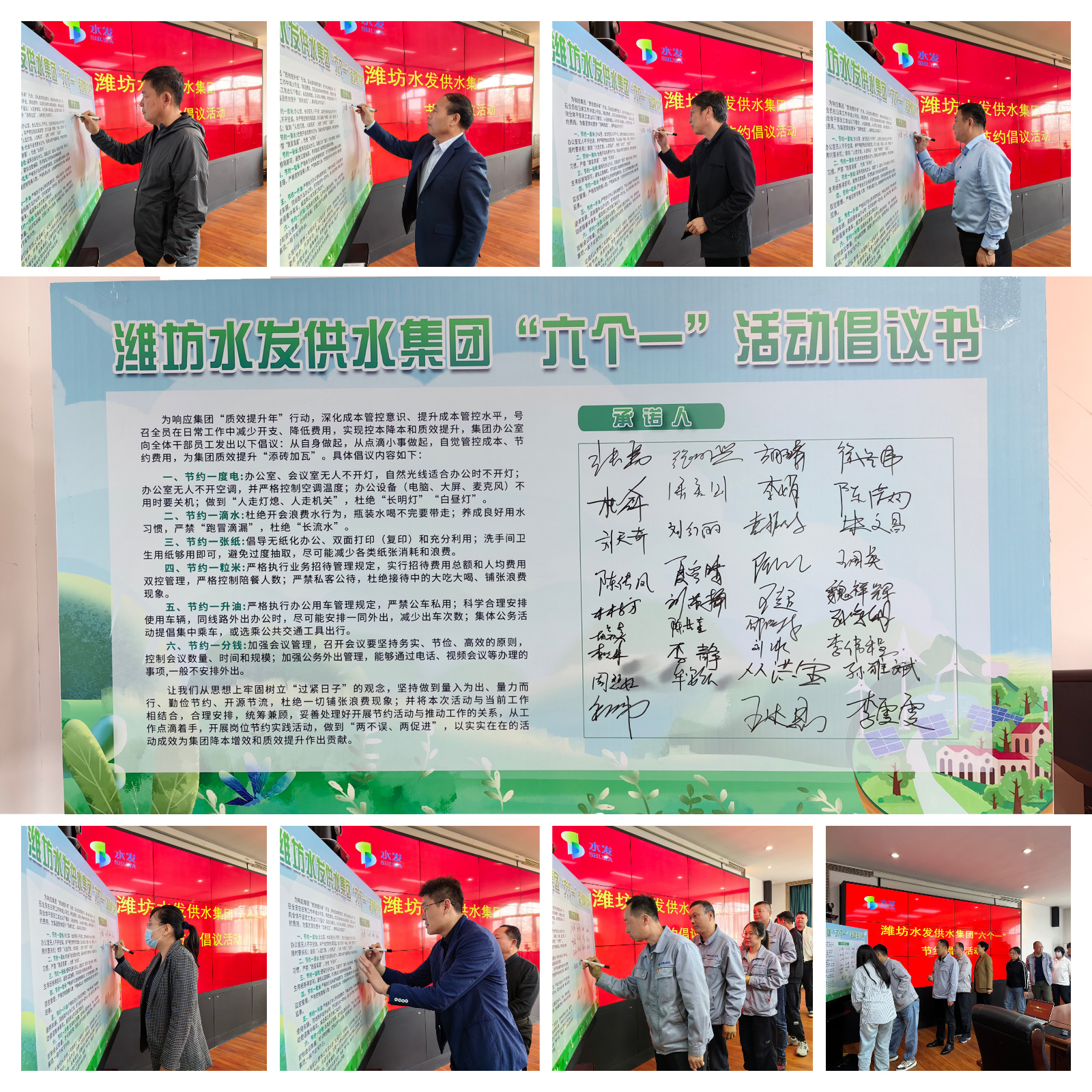會(huì)上,供水集團(tuán)黨總支書(shū)記、董事長(zhǎng)張勇首先宣讀了“六個(gè)一”活動(dòng)倡議書(shū),號(hào)召全體員工提升降本增效意識(shí),爭(zhēng)做勤儉辦公、節(jié)能降耗的先進(jìn)模范。隨后,供水集團(tuán)領(lǐng)導(dǎo)班子成員及參加活動(dòng)的干部職工紛紛在活動(dòng)展板上簽上自己的名字,承諾自覺(jué)踐行“六個(gè)一”節(jié)約倡議。